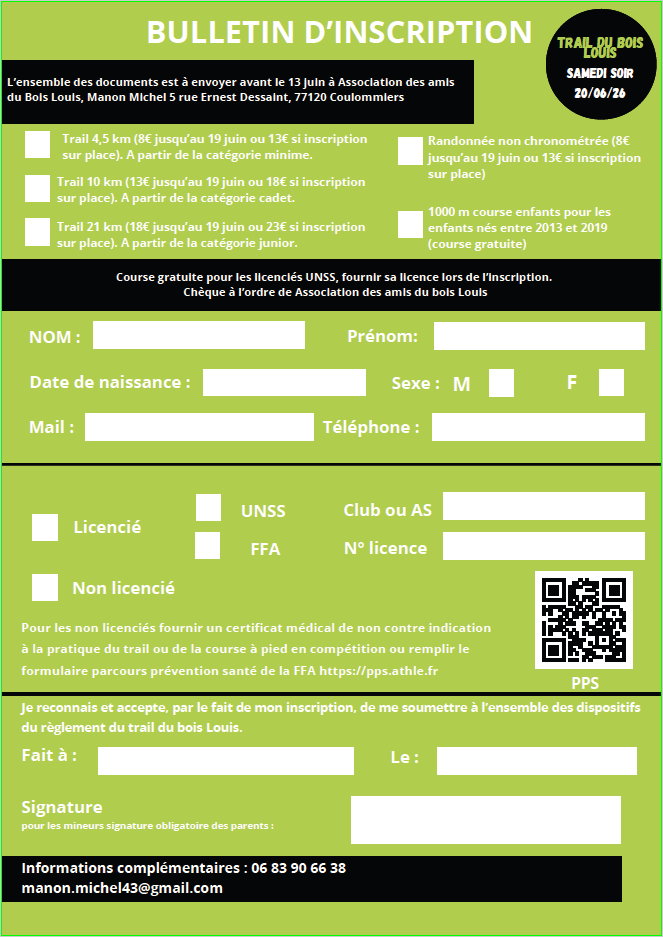 Inscription Les inscriptions sont possibles en remplissant le bulletin ci-dessus. Sinon vous pouvez aussi vous inscrire en ligne via le lien suivant : InScription EN LIGNE ou en scannant ce QrCode Partagez !